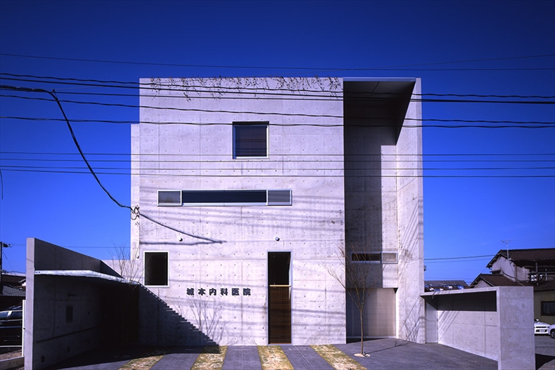 敷地は、斜面地一帯に広がる住宅地を背にし、波静かな内海をのぞむ人口6000人程度の町にある。周辺には、造船所や鉄工所が多く存在し、用途地域は準工業地帯である。 建物は地下1階、地上3階建ての診療所併用住宅である。地下1階と地上1階部分が診療所で、2、3階が住宅部分となっている。 近年、内海と敷地との間に高架橋が整備され、期待していた唯一の瀬戸内海の美しい景観が一切望めなくなった。クライアントは、子供の頃からこの町で暮らしており、このように変化した景観に対して、ストレスを感じていた。 われわれは、住宅部分の内部空間と外部空間を垂直方向につなぐために、アイレベルの窓を極力排除し、ハイサイドライトとトップライトを配置することにより、内部空間を上空へ拡張することを考えた。数少ないアイレベルの窓も、ほとんどが内部化された外部空間(光庭)に面しており、全ての内部空間は、垂直方向からの多様な光で満たされている。 屋上には、東西の壁面に沿って下垂れ用のアイビーを植裁しており、数年後には、壁面は全て緑で覆い尽くされることになるだろう。この建物で壁面に穿たれた開口部は ほとんどが東西面であり、その数少ない窓も完全に覆われてしまうことになる。 将来、トップライトから降り注ぐハードエッジの光とアイビーの葉を透過したゆらいだ光で内部空間が満たされることになるだろう。クライアントは、今からこの光のイルミネーションを楽しみにしている。 -中薗哲也、中佐昭夫- |
